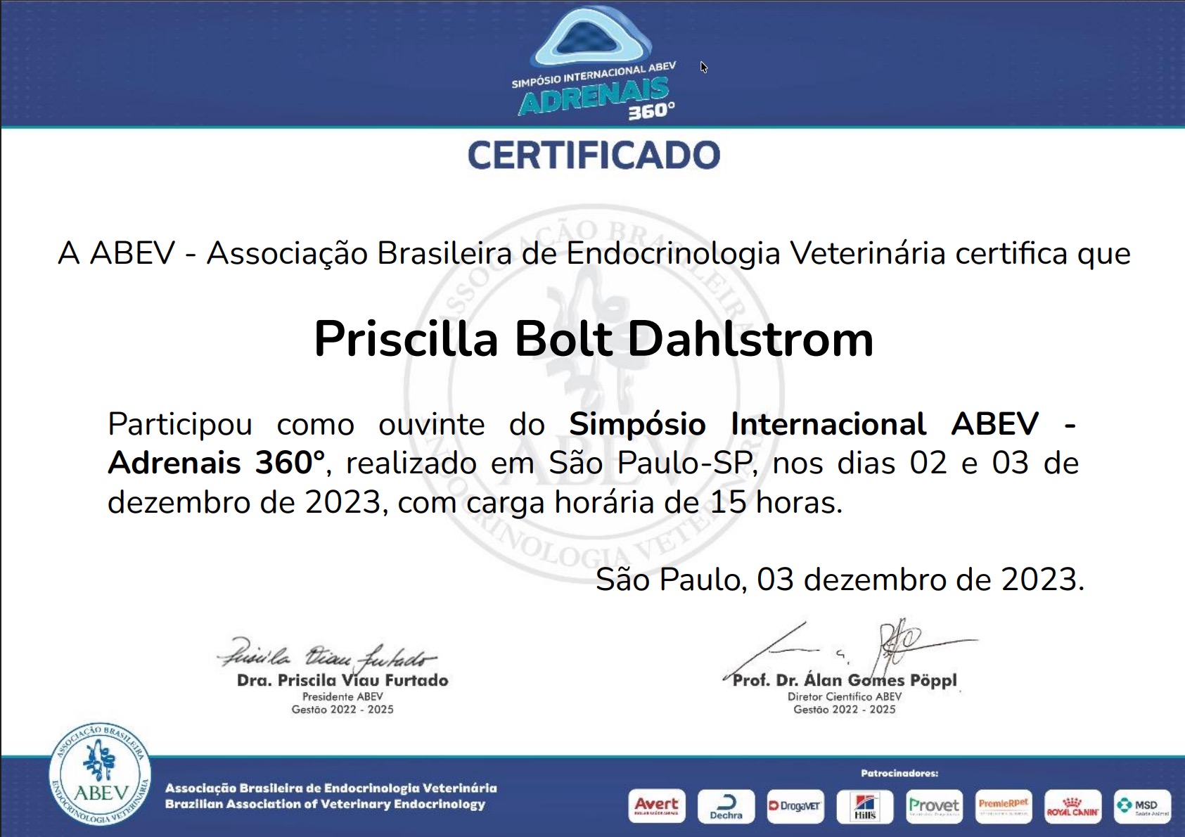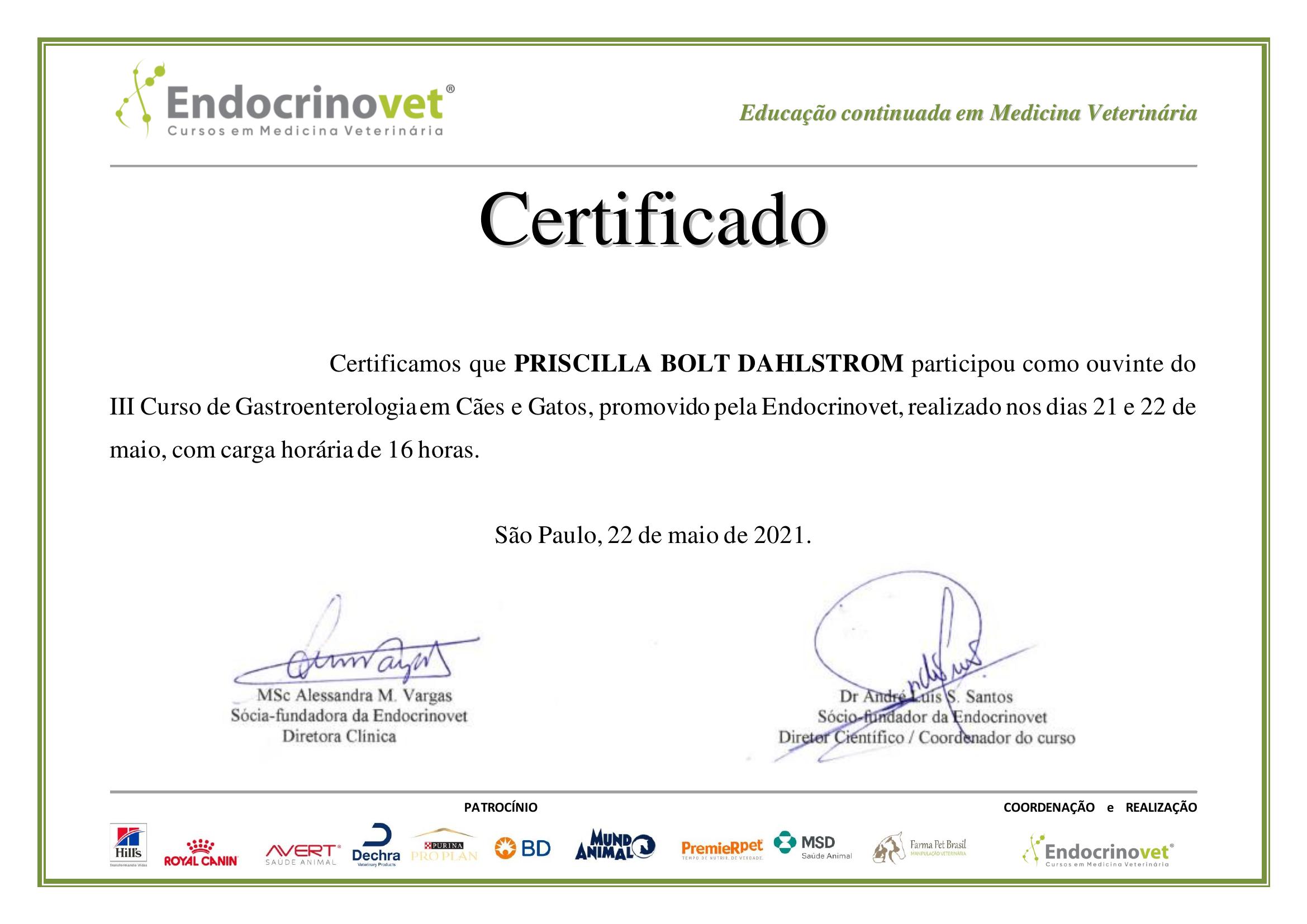 Me formei médica veterinária em 2015 e logo em seguida, entrei para residência em clínica médica. O amor pelo universo hormonal só crescia durante a residência e me especializei em Endocrinologia e Metabologia Veterinária em 2018, realizei diversos cursos de aperfeiçoamento em diabetes mellitus e síndrome de Cushing.